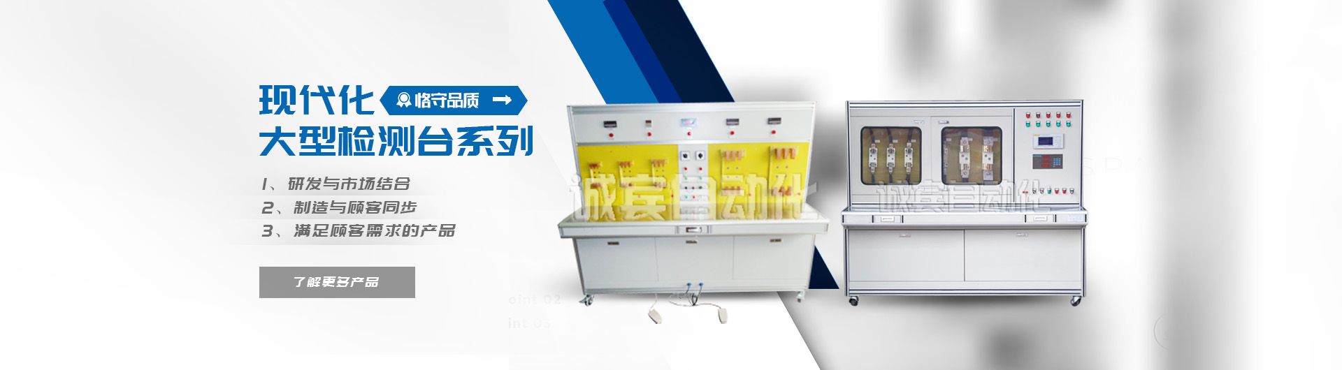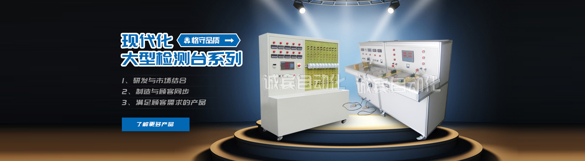 樂清市誠賓自動化檢測設備有限公司坐落于溫州樂清市柳市鎮翔金垟村是集科研、生產、銷售為一體的現代化大型檢測臺生產單位,專業生產智能斷路器控制器測試臺、萬能轉換開關機械壽命測試臺、信號燈老化測試臺、成套測試臺等各種檢測臺。公司堅持研發與市場相結合、創新與顧客同步的發展思路,不斷開發出能滿足顧客需求的產品。誠賓自動化有雄厚的技術力量,先進的生產工藝及先進的檢測設備為產品的質量提供了可靠的保證。公司自建廠以來,通過全體員工的共同努力,在激烈的市場競爭中迅速崛起。